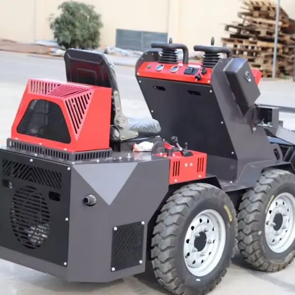 Le châssis de notre mini chargeuse compacte électrique haute puissance adopte une conception de chargeuse compacte spécialisée qui permet une rotation à 360 degrés dans sa propre empreinte. Cette maniabilité permet au chargeur de fonctionner efficacement dans des ateliers confinés, des allées d'entrepôt étroites et entre des bâtiments résidentiels.